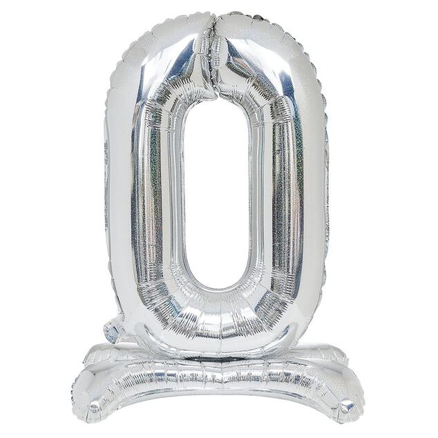 Ballon chiffre 0 doré ou argenté H80 cm avec support