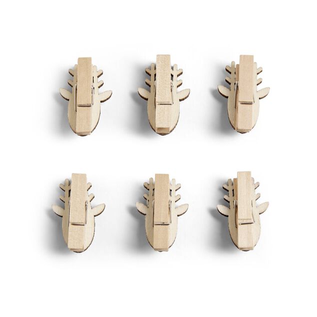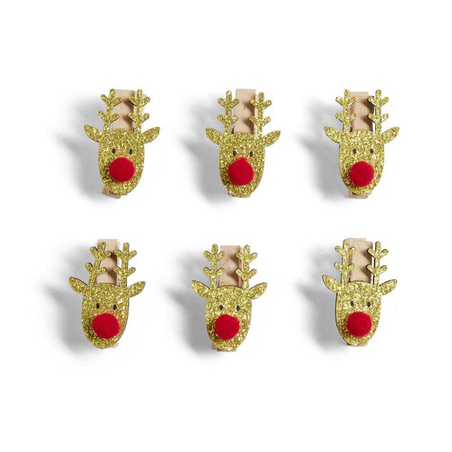 Mini pince en bois forme tête de renne rouge et dorée 6 pièces