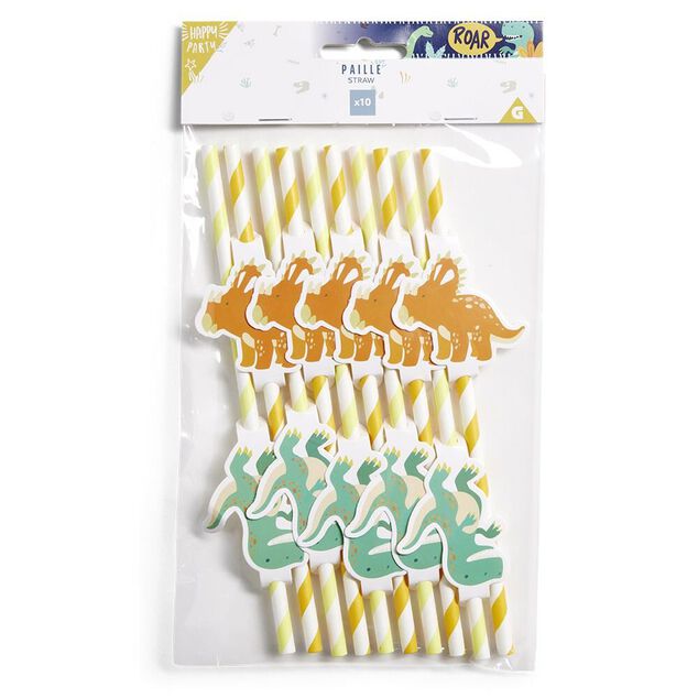 Paille décor dinosaure x10