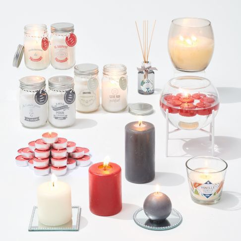 Il existe de nombreuses formes de bougies déco : bougie boule de diamètres variés, bougie pilar plus ou moins haute, bougie chauffe plat, allongée ou encore des bougies flottantes.