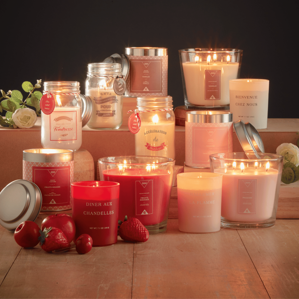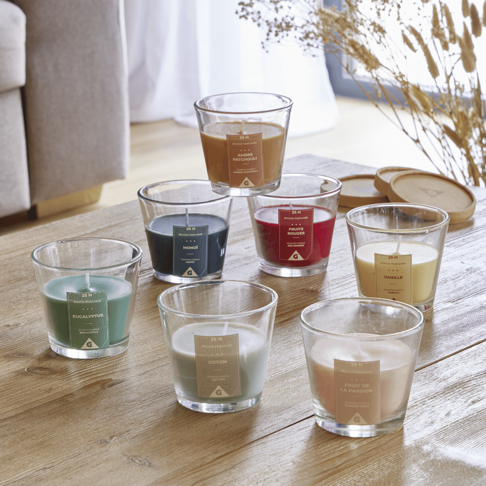 Les bougies parfumées sont généralement vendues dans un récipient non inflammable, de type verre ou inox. Chez GiFi, les bougies parfumées sont présentées dans un photophore en verre, transparent ou coloré ou sont en céramique.