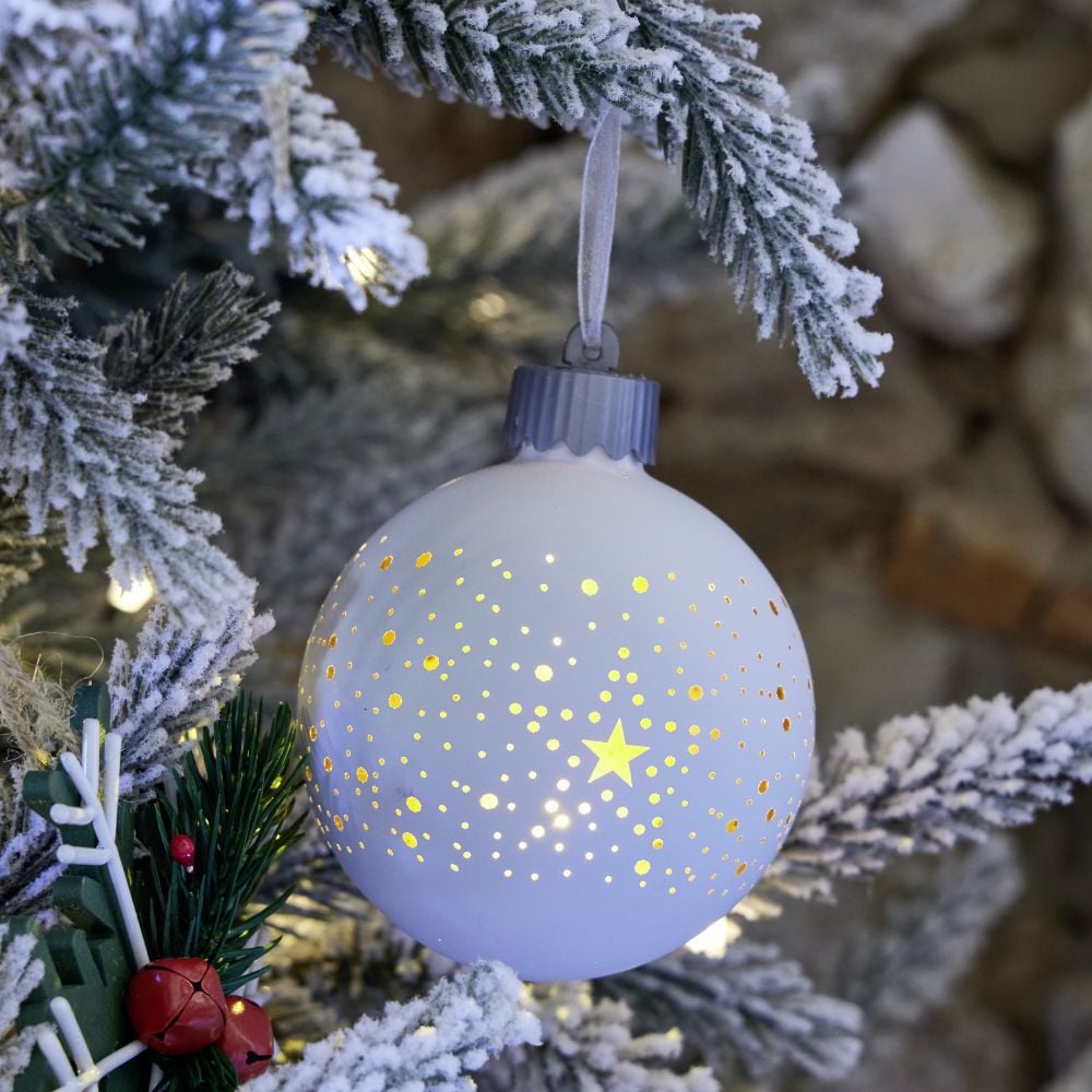 Accrochez ensuite les autres boules de la même manière que les autres. Gardez toujours cet effet de profondeur en positionnant les boules au bout des branches selon leurs formes.
