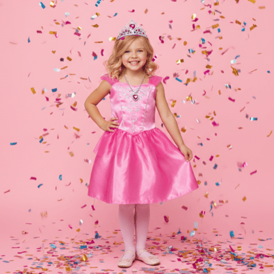 Même si le déguisement de princesse est un classique du Carnaval, on ne s’en lasse pas ! Il peut devenir original en laissant place à la fantaisie avec notamment des accessoires uniques associés à la robe. Laissez votre fille vivre des aventures féériques mémorables en arborant fièrement la couronne et le diadème en plus de briller dans la robe d’un rose éclatant ! Chaque élément transforme le déguisement en une véritable invitation au rêve, parfait pour un Carnaval magique et inoubliable.
