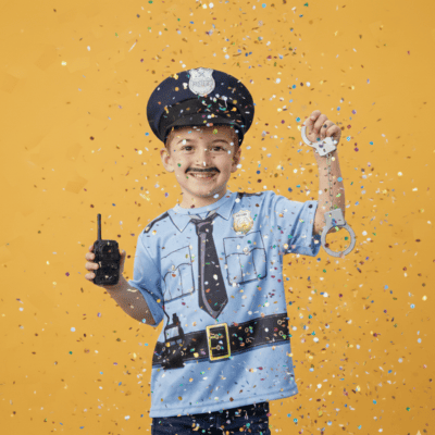 Votre enfant se transforme en petit agent avec notre déguisement policier qui lui permet de vivre des aventures passionnantes lors du Carnaval ! Vous voulez stimuler son imagination ? Permettez-lui alors d’incarner un personnage courageux et responsable ! Ce déguisement se distingue aussi par son côté rassurant et valorisant : avec lui sur le dos, il aura l’impression d’avoir une mission, de faire respecter les règles et de vivre de grandes enquêtes. Est-il prêt à vouloir sauver la fête ?