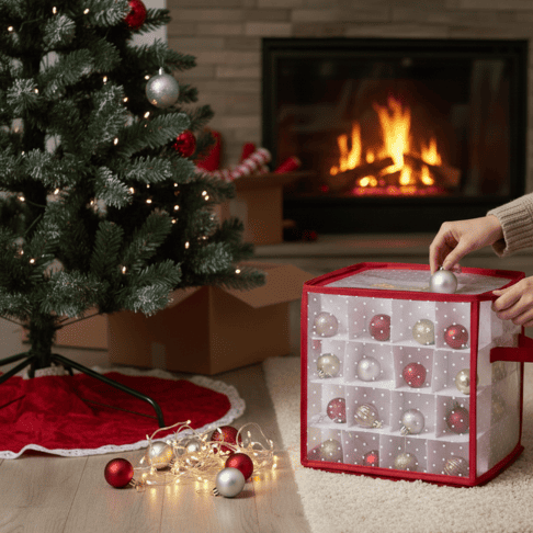 Les décorations textiles (chaussettes de Noël, nappes…) doivent être propres et parfaitement sèches avant d’être rangées. Pliez-les proprement et glissez-les dans des sacs ou boîtes hermétiques pour éviter les odeurs et l’humidité.