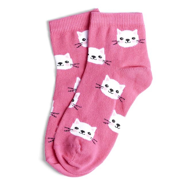 Chaussettes fille rose motifs têtes de chat T26/35