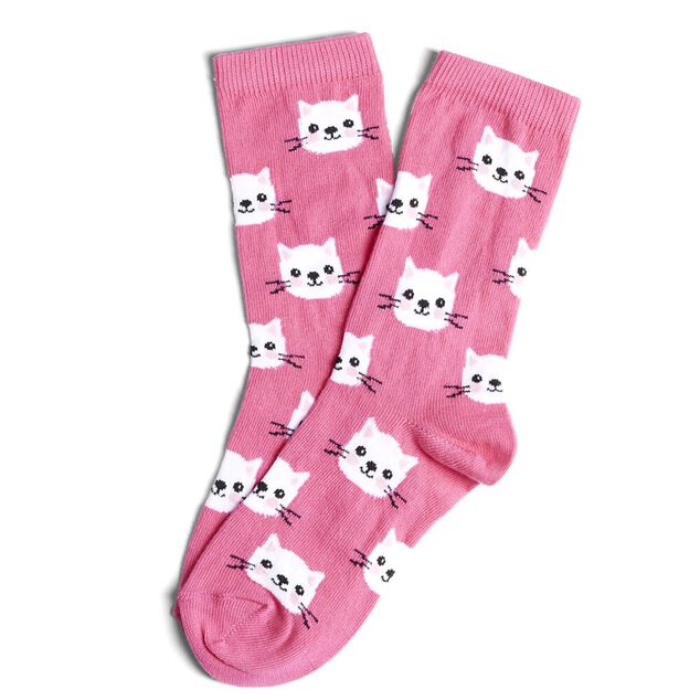 Chaussettes fille rose motifs têtes de chat T26/35