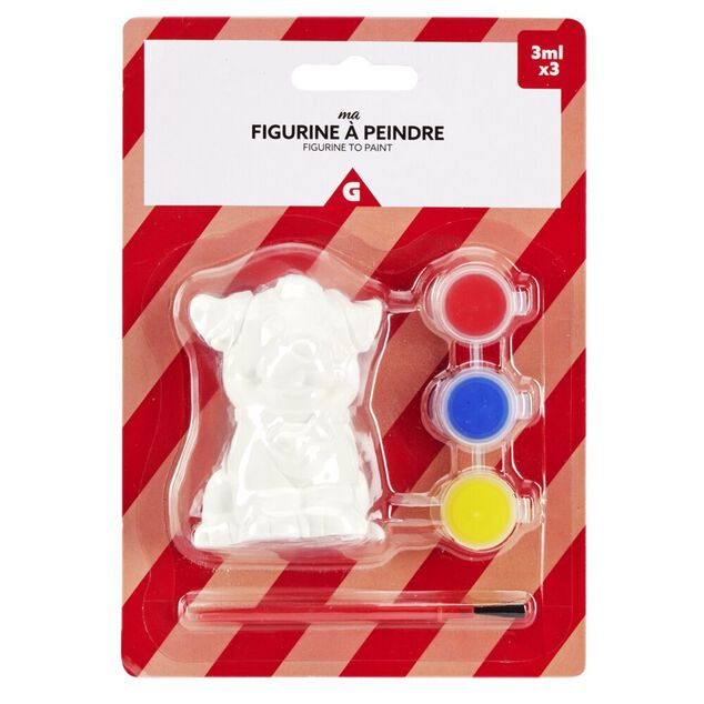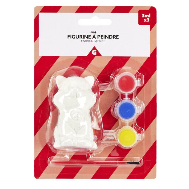 Figurine à peindre en bois avec 3 mini peinture acrylique et 1 pinceau