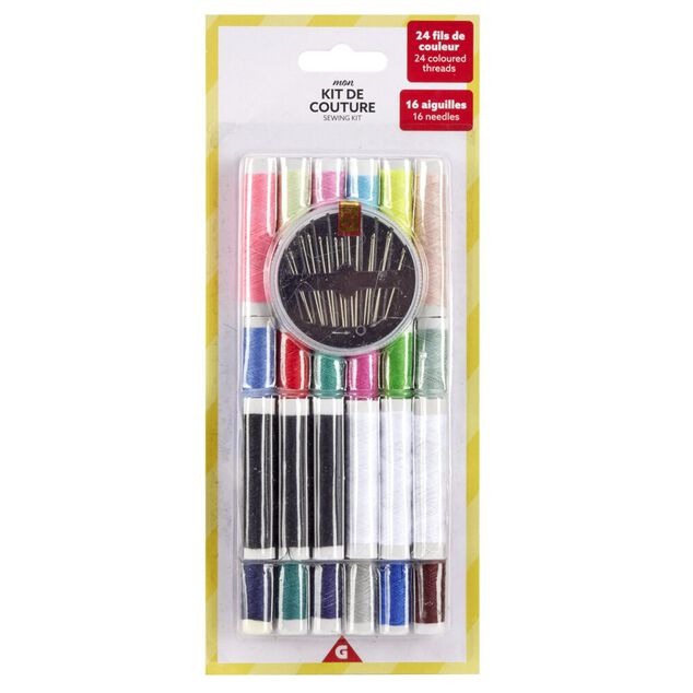 Kit accessoire de couture 24 bobines de fils couleurs et 16 aiguilles