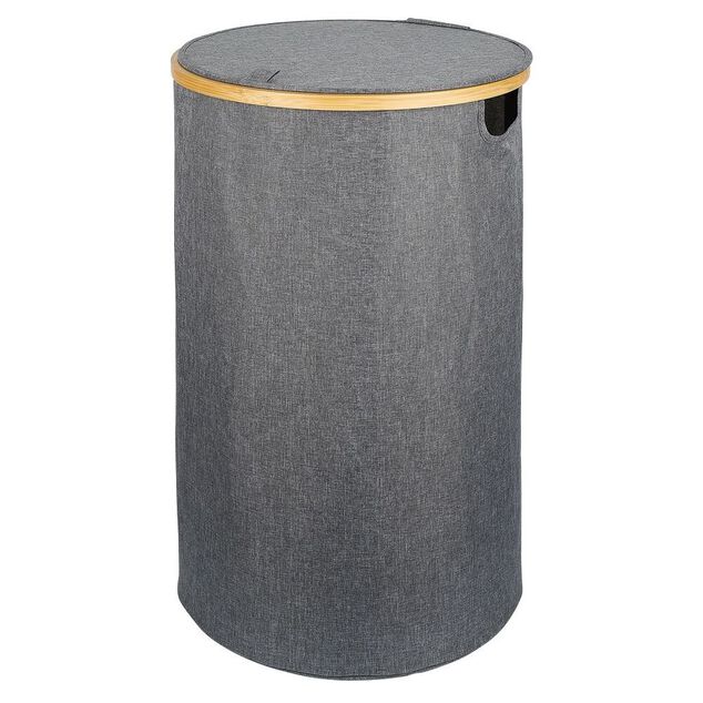 Coffre à linge rond 75L bambou et polyester gris