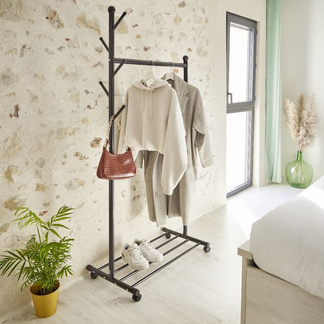 Portant vêtements simple acier et roulettes 3en1