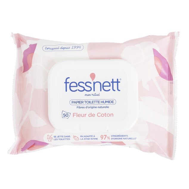 Papier toilette humide Fessnett fleur de coton 50 feuilles