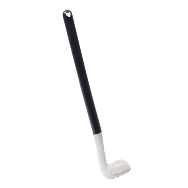 Brosse de toilette en silicone et plastique incurvée blanc et noir H39,3cm