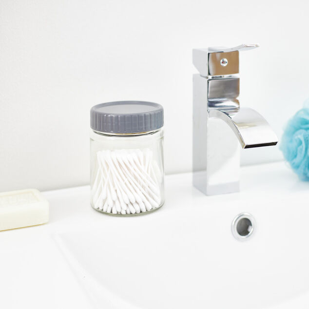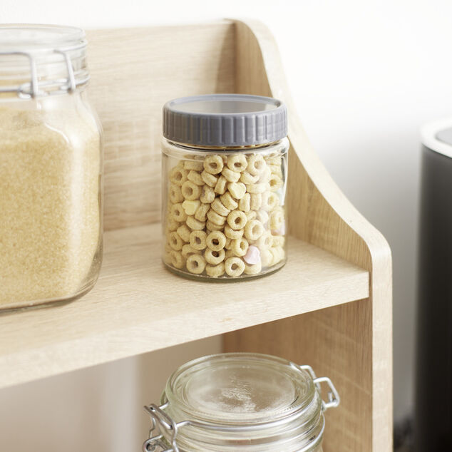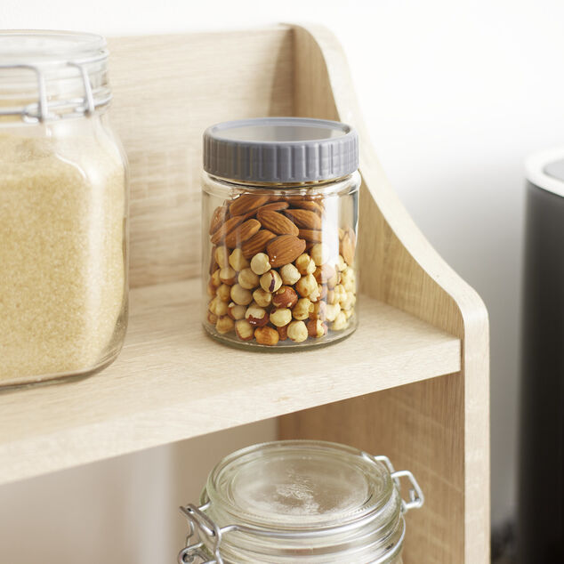 Bocal alimentaire en verre x2 couvercle plastique gris Ø8xH10,5cm