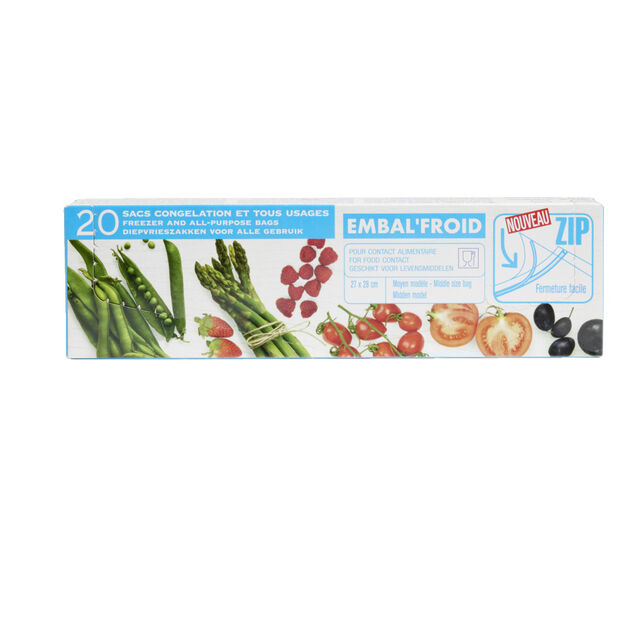 Lot de 20 sacs de congélation avec fermeture glissière 28x27cm