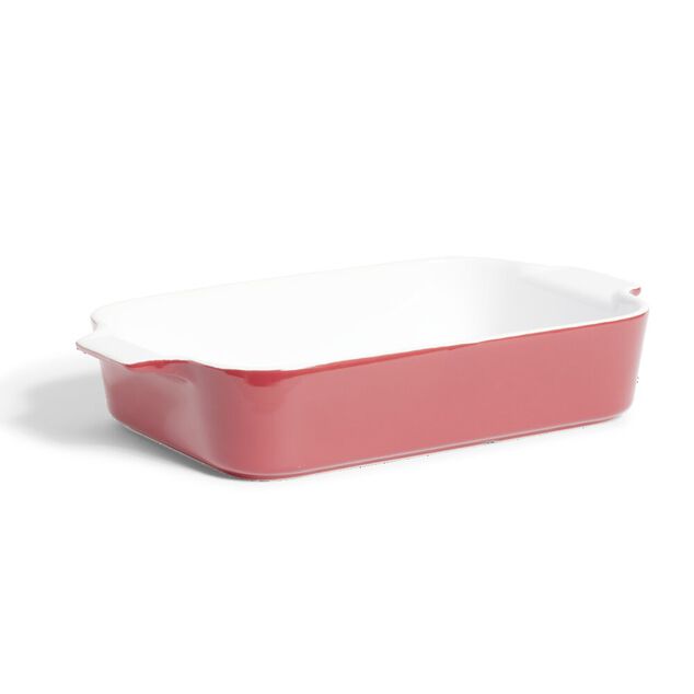 Plat à four en grès blanc et rouge 35,7x20xH6,7cm