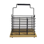 Porte couverts fer noir et bois marron 17,5x14x12cm
