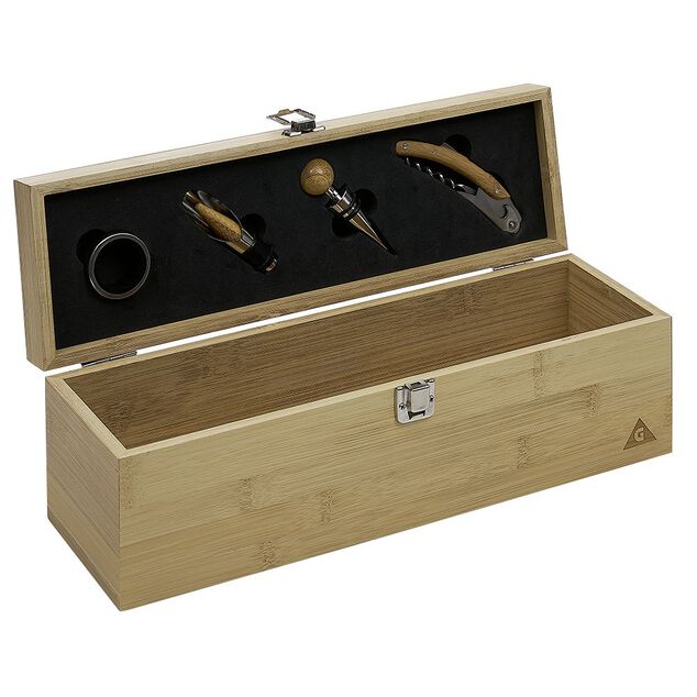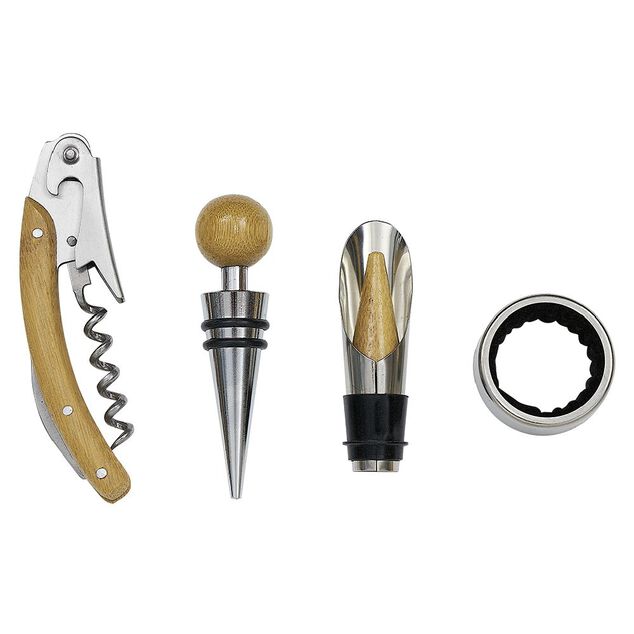 Accessoire à vin 6 pièces avec support en bois noir 6x6xH16cm