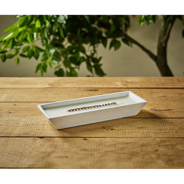 Bougie cire en céramique blanc effet flamme cheminée 30,5x10,5xH4,5cm