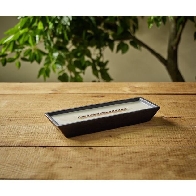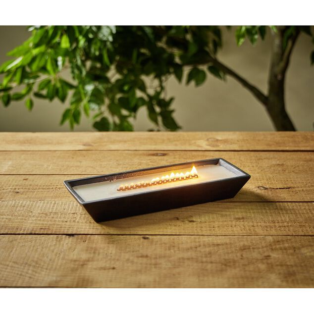Bougie cire en céramique noir effet flamme cheminée 30,5x10,5xH4,5cm