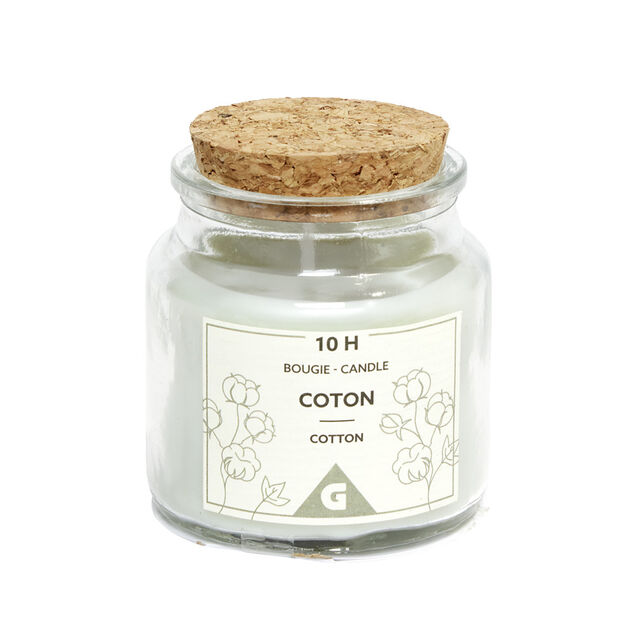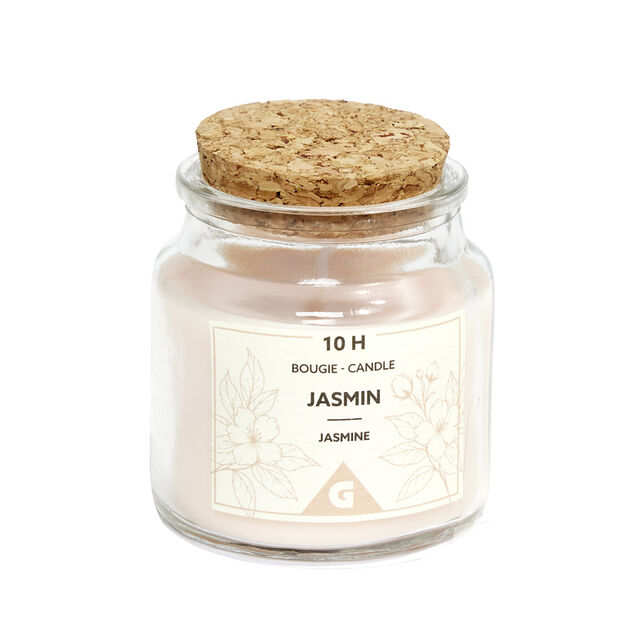 Bougie dans verre et bouchon liège Ø6xH6,5cm (4 modèles)