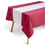 Nappe en tissu rouge avec chemin de table blanc motif houx 140x250cm