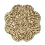 Set de table jonc de mer tressé et coton forme fleur contour bleu Ø38cm