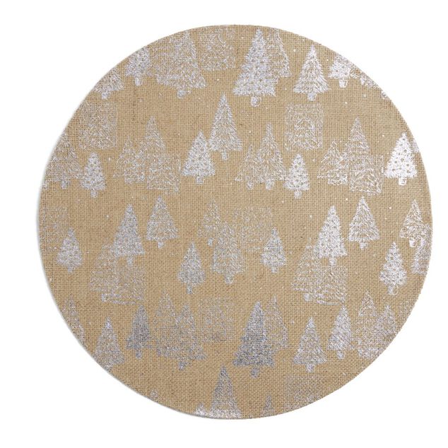 Set de table rond en jute naturel motifs sapins argentés Ø38cm
