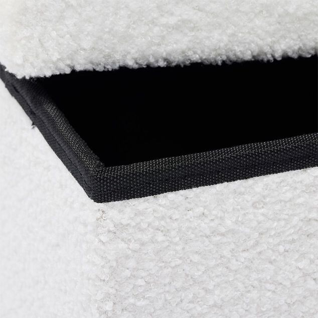 Pouf coffre Clara décor laine bouclée Blanc - L38xP38xH38 cm